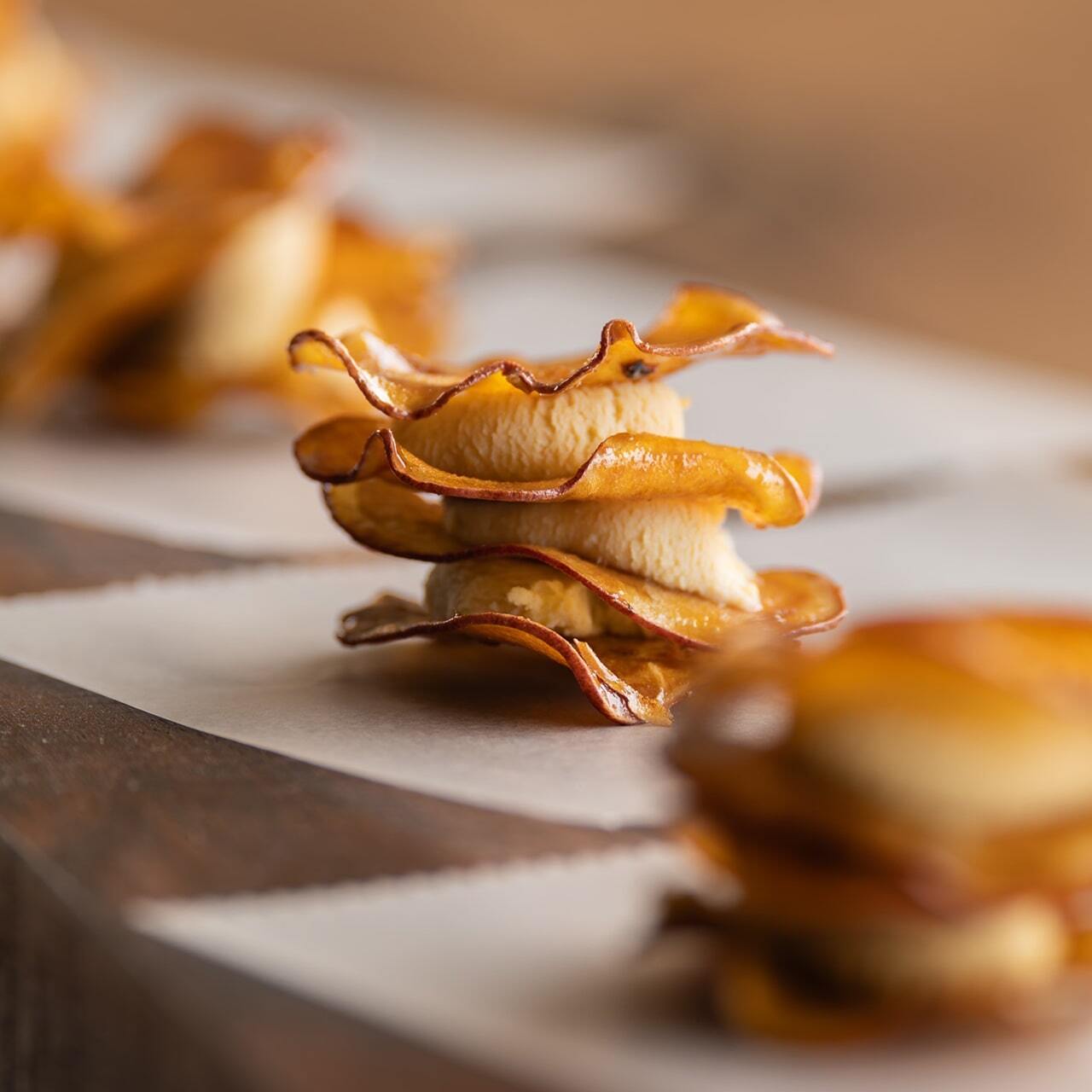 高知の銘菓芋けんぴとフレンチを組み合わせ考案した「フォアグラ芋けんぴ」。